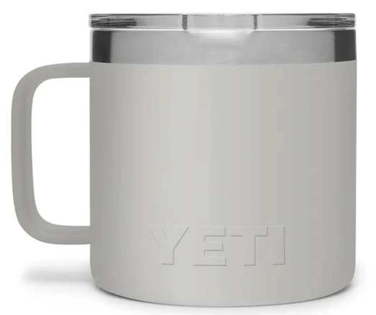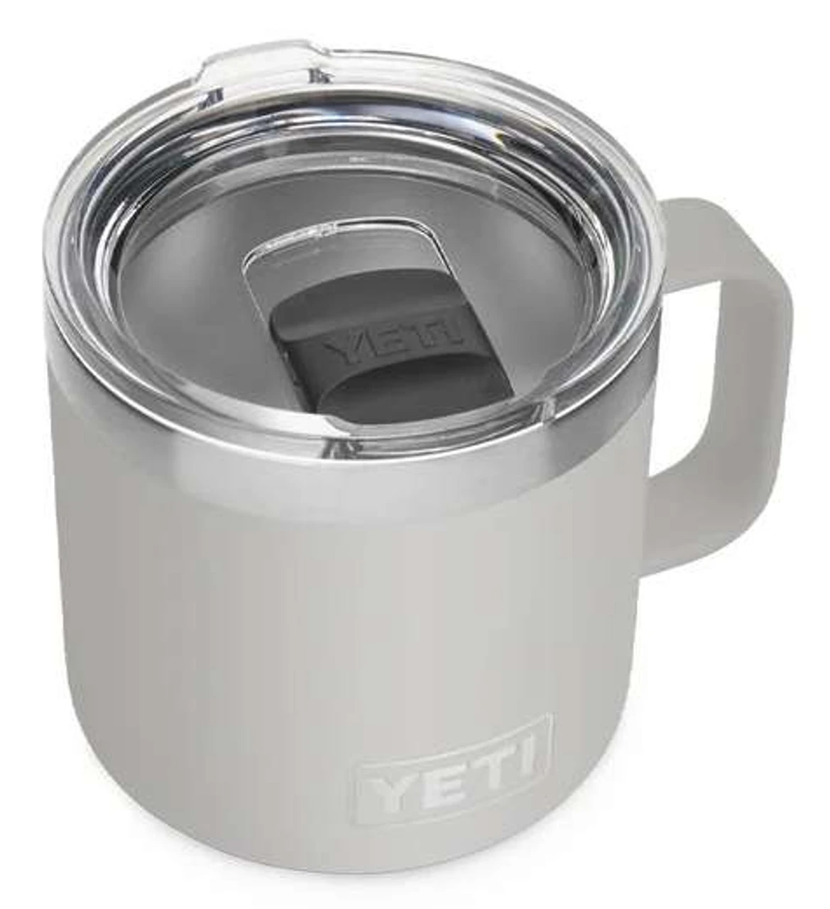 The YETI Rambler 14oz Mug is the must have mug for camping, fishing, tailgating and so much more. It’s made with 18/8 stainless steel construction and no sweat design. It will keep your beverage cold or hot for longer than a standard mug with double-wall vacuum insulation. Now comes equipped with the dishwasher safe and shatter resistant YETI MagSlider lid. This lid uses the power of magnets to keep your drinks locked in and for smooth opening and closing.